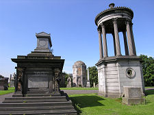 ![]() The Upper Part of the Necropolis. The Visitor in the Lower Centre of the Picture Gives an Idea of the Size of the Monuments. On the Right is the 35ft High William Gavin Monument. |