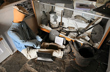 One display when we visited recreated the surgery of Dr Lachlan Grant of Ballachulish, now recognised as a pioneer in health care in the very early 1900s. Perhaps the last area most visitors reach is a lean-to against the rear wall of the main museum which is used to house a wide variety of everyday objects very roughly from the "50-100" year old era: ranging from mangles to butter churns, plus a large collection of clothes irons.