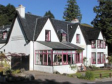 Glenfinnan Station is a little to the west of the viaduct, approached by trains through a deep cutting. A number of stations on this line have lost their original station buildings. Glenfinnan hasn't, largely because of the efforts of enthusiasts who have converted the buildings into a railway museum. And across the station car park are two old railway carriages. One is now a Sleeping Car, while the other is the Dining Car, complete with a verandah on its southern side overlooking the trees in the valley below and offering excellent, good value snacks and refreshments. The Sleeping Car carries on a tradition that at Glenfinnan dates back to the 1930s, and which used to be common at many stations on this line.