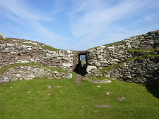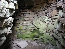 The remains of the broch are still impressive. The interior is deeper than the exterior, which remains partially banked. In the entrance passage is a cavity that was possibly used to guard the broch. And on the opposite side of the broch from the entrance is a set of steps within the wall.