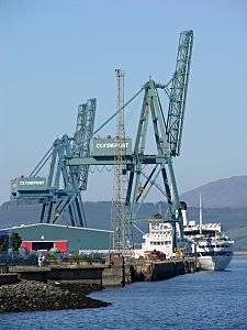 Greenock was home to many shipbuilders in the late 1800s and further dock improvements were undertaken. Today the only shipbuilder still in operation on this stretch of the Clyde is further upstream at Port Glasgow. But it remains a significant port. The Greenock Ocean Terminal is the main container terminal for the west of Scotland and has daily feeder links to international shipping services via Southampton, Liverpool and Belfast. It is also becoming increasingly popular as a stopping off point for cruise ships.