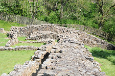 Other than the slope of its site and the beauty of its surroundings, the most interesting feature of Poltross Burn Milecastle is a flight of stairs located in the north-east corner. It is thought by many that these gave access to a wallwalk around the walls of the milecastle. Only three steps remain, but the geometry of this corner of the structure suggests that the steps would have reached a height of about 4m. Opinions differ as to whether this implies that all milecastles had such wallwalks, and walls of the same height: and there remain arguments about whether a wallwalk around the milecastle would imply the existence (or not) of a wallwalk on the lengths of Hadrian's Wall on either side.