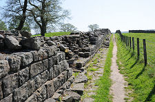 A path across the fields between the car park and the vicarage leads to a railway crossing and, beyond it, to the Poltross Burn Milecastle. There is also a little visited stretch of Hadrian's Wall leading south-east across the fields beyond from the vicarage, but this seems difficult to access. A much better bet is to cross the minor road and pick up the signposted track to the farm at Willowford. This follows a very well preserved length of Hadrian's Wall that includes two turrets and is in all nearly two thirds of a mile long.