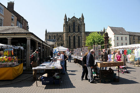 The Market Place is worth exploring. Hexham Market was first held in 1239 and it remains home to a weekly general market and a fortnightly farmers' market. It is dominated by the Moot Hall at one end, and the east gable of Hexham Abbey at the other. Within the Market Place itself is The Shambles, a colonnaded shelter erected in 1766 to protect market traders from the Northumberland weather. Also within the Market Place is the red stone Market Cross.