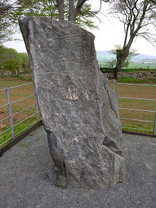 The Picardy Stone stands in a field a few yards south of a minor road two miles north-west of Insch in Aberdeenshire. Just over a mile to the stone's south, and clearly visible from it, is the hillfort at Dunnideer and there may have been a link between the two.