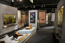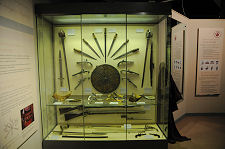 The museum is on two main floors connected by stairs housed in the curved section of the frontage, and by a lift, ensuring full accessibility. The largest part of each floor is given over to nicely laid out, beautifully lit and informatively captioned museum exhibits. There is also a gift shop and a coffee shop on the ground floor, plus the Discovery Room for educational visits and functions. On the first floor one side is given over to the art gallery and the adjacent small gallery, which provide a venue for the museum's programme of temporary exhibitions. When we visited this was home to "Way of the Warrior", featuring arms and armour made for epic movies.