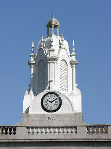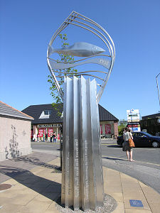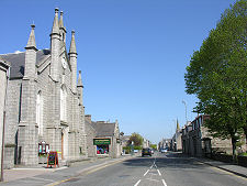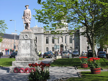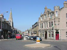 Close to the railway station is the focal point of Inverurie where the High Street broadens out into the Market Place. This has in its centre the small wooded park surrounding the war memorial. At the head of the Market Place is the large grey stone Town Hall, built in 1863. Since 1996 this municipal building has been joined in Inverurie by the new office block on the western side of the town that serves as offices of Aberdeenshire Council.
