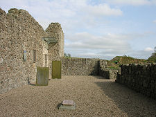 At the west end of the church visitors can view a large collection of stone fragments, some of which give some sense of the degree of ornamentation once on show here. But the main area of interest lies towards the east end of the church. Here a modern perspex roof protects from further weathering a sacrament house. It is dated 1524 and carries the initials AG, thought to refer to Canon Alexander Galloway, rector of the church for many years during the first half of the 1500s and a man also associated with St Machar's Cathedral in Aberdeen.