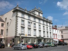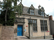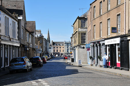 Overlooking the square and set between Woodmarket and Horsemarket is the imposing Town House. This was built in 1816 to replace an earlier thatched Tolbooth. The north side of the Square is dominated by the Cross Keys Hotel, a coaching inn built in 1760, but given an Italianate look (and an extra floor) in a makeover in 1880. An attractive building, the Cross Keys Hotel brings a touch of the central European to the Square's continental flavour. (Continues below image...)