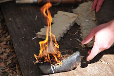 Back on dry land the experience continues with a series of demonstrations of that technology in action. We saw a number of different types of wood-turning lathes demonstrated, and cereal grinding, thread spinning and stone drilling. But the most fascinating of all, inevitably, was a demonstration of fire lighting using friction. We've all seen this sort of thing done on the survival programmes available to view on obscure satellite TV channels, but there's something about seeing someone do it for real that is deeply impressive, almost awe-inspiring.