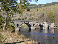 The parish church built to serve Kenmore in 1760 reused parts of an earlier church built in 1669. It stands at the west end of The Square on a site that drops steeply on two sides to Loch Tay. Another feature that was important to the success of the newly redeveloped village was the construction in 1774 of the seven arch Kenmore Bridge, built across the River Tay immediately to the north-west of the village, where the river flows out of Loch Tay. It is said that £1,000 towards the cost of its building was donated by George III.