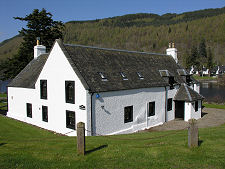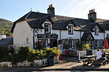 At the heart of Kenmore is "The Square", an extremely broad east west street lined with strikingly attractive (mainly) white harled buildings. The most imposing of these is the Kenmore Hotel, on the north side of the Square. This claims to be Scotland's oldest inn and carries a date of 1572. On one of the walls is a poem written, actually onto the plaster of the wall itself, by Robert Burns during a visit in 1787. The Kenmore Hotel oozes character with distinctive rooms and a striking front entrance supported by black painted tree trunks. At the end of the row of cottages on the opposite side is the village shop and post office.