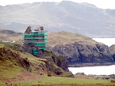 As you come to the southern end of the island you are faced with junction in the path. Ahead of you it continues around the island, while the track to your left leads to Gylen Castle. If you tackle the ten minute walk to the castle first, you will find the path leads you past a rocky beach and then steeply up to an "L" plan tower house, built in 1587. This clings to the peak of a headland that falls away dramatically on all sides.