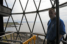 The light room itself comes as something of a surprise. We tend to have a fixed idea of the lights in lighthouses coming from large, multi-faceted Fresnel lenses. There is one at Ardnamurchan, but it is in the exhibition centre. What you find in the light room are two horizontal rows of what look like car headlights in a rotating housing that ensures the lighthouse's characteristic double flash rotating beam is maintained.