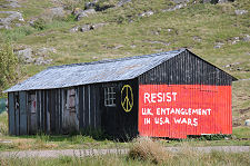 Sanna lies only a mile or so around Sanna Bay from Portuairk, the slightly larger village that occupies the bay's north-facing side. However the roads to the two diverge close to Kilchoan, and a mile across the bay translates into around ten by road. So if you want to get to Sanna, watch out for the right turn not far from Kilchoan. The road to Sanna from Kilchoan goes through some of the oddest scenery in Scotland. The countryside is extremely rough going, but as you approach the tiny hamlet of Achnaha you find yourself on a flat heather-clad circular plain about two miles in diameter surrounded by a striking ring of sharply defined rocky hills. You are driving across the centre of the crater of a very long extinct volcano.