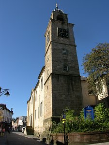 Close to Kilmarnock Cross is the tall tower of the Laigh Kirk. The tower has been attached to three different churches. The first was built in the 1600s, and the second in 1750. This second church was the site of tragedy when on 18 October 1801 falling plasterwork caused a stampede, and 29 people were killed in the crush. The church was rapidly demolished and the replacement on view today was built in 1802: but with the tragedy still fresh in everyone's mind, the new church was built with no fewer than thirteen exits.