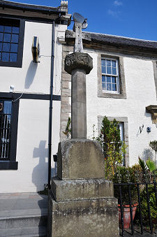 Today's visitor will probably focus their attention on the ruins of Kilwinning Abbey, and on the fairly attractive Main Street (as pedestrianised shopping streets go) which passes on an east-west axis just to the north of the abbey. There are a couple of particular points of interest to look out for. At the east end of Main Street, almost in front of the Buffs Tavern (where it was moved to in 1835 to make way for traffic) is a mercat cross which is topped off with a highly unusual wooden cross.