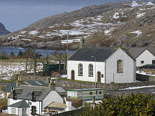 Close to the harbour is the Free Presbyterian Church built in 1829 to a Thomas Telford design. The nearby manse has long been derelict. Moving away from the immediate vicinity of the harbour, there has been a fair bit of new building in recent decades. The new secondary school, contained within a single structure overlooking Loch Innes is an especially striking addition. The Kinlochbervie Hotel, superbly placed to offer views south and west, was built in 1968, to replace the earlier Garbet Hotel, built before World War Two, which had been destroyed by fire.