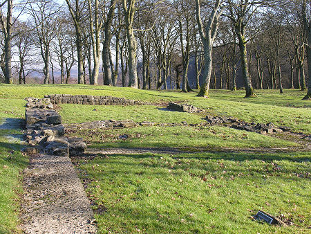 Bar Hill Roman Fort was unusual in that its north wall does not form part of the Antonine Wall itself. Instead, while the Antonine Wall follows a course a little way down the shoulder of the north side of Bar Hill, the fort is draped over the summit of the hill and built on its upper slopes. The Military Way passed between the fort and the wall.