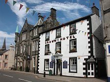 Langholm lies at the confluence of the River Esk and the Ewes Water. In the angle formed by the two, opposite the main car park and tourist information centre, are the fairly slight remains of Langholm Castle. This was built in the 1500s and became the seed that crystallised the growth of a settlement on the east side of the River Esk, around today's High Street. Amongst the early buildings was a second castle, a tower house later partly incorporated into a hotel development.