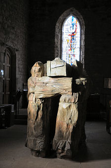 The interior of St Mary's Church carries a sense of great peace and antiquity. It is also considerably larger than it appears from the outside: perhaps because St Mary's appears rather diminutive when compared with the ruins of the priory church. You enter via the porch that leads into the south aisle, and first time visitors, especially if on their own, can find what awaits inside a bit of a shock. The south aisle is home to "The Journey", a magnificent elm sculpture by Fenwick Lawson carved largely with a chainsaw. This depicts six rather larger than life hooded monks, carrying a coffin towards the entrance. It represents the journey undertaken by the monks of Lindisfarne, carrying St Cuthbert's coffin, after they left the island in 875 and before the community finally settled in Durham in 995.