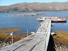 The focus of Lochailort is the junction between the A830 and the A861. Nearby is the Lochailort Inn, well placed to enjoy spectacular views to the south and west. Down the hill to the south you pass the extensive premises of the fish farming company Marine Harvest to your left. Access is not usually possible on health grounds (the health of the fish), but here they breed salmon and other species to provide stock for their operations scattered across the western Highlands. More evidence of the importance of this industry to the Highlands can be seen from their farming units in Loch Ailort itself.