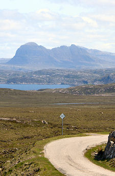 Probably the most popular route to Suilven starts a mile or so outside Lochinver on a minor road leading to the community-owned Glencanisp Lodge, which offers B&B. There is some parking available in the walkers' car park at the point the road becomes a drive, about half a mile short of the lodge. The only alternative is the walk in from Lochinver itself. (Continues below image...)