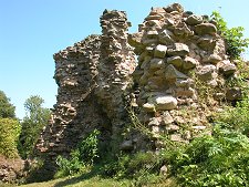 What you find is a massive stone defensive wall 12m high, with arms projecting forward across a deep and still watery moat. To the north of this main wall are a series of other stone structures variously stripped of their ashlar outer facing, overgrown by ivy, and in places simply toppled over. Parts of the ruins are fenced off and inaccessible as they are not considered to be safe.