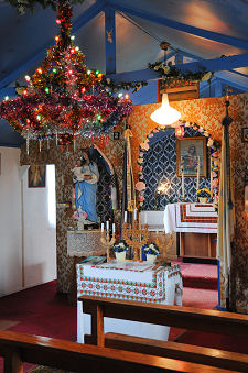 450 of those men were then moved to the disused POW camp at Hallmuir, where most found employment on local farms and forestry projects. Many subsequently settled into the local community. While at Hallmuir the Ukrainians converted the chapel established here by the Italians into a Ukrainian Orthodox Church. After much of the rest of the camp fell into disuse, the landowner gave permission for the chapel to continue in being and to offer services in Ukrainian. It still does so today, and the fact that it remains a place of worship adds a great deal to the atmosphere of the chapel.