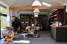 The visitor reception area is large and welcoming, with a shop off to one side, selling the sorts of things you would expect from an upmarket distillery shop: including the distillery's own-produced Aqua Vitae. A quick explanatory diversion is called for here. A major impediment to gaining funding support for a distillery project is the fact that once the big money has been spent and production starts, it is three years before the maturing spirit can be legally called (and sold as) Scotch whisky: and up to eight or ten or more years before the spirit is likely to be deemed sufficiently matured to be sold as the distillery's single malt Scotch whisky.