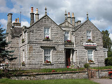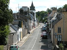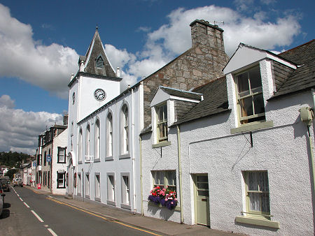 New Galloway's High Street is an attractive mix of light grey stone and white render finishes. The most striking building is the Town Hall with its attractive tower. In its current form it dates back to 1875. Nearby and almost facing one another across the High Street are the Kenmure Arms Hotel and the Cross Keys Hotel, two of the range of accommodation providers in the village.