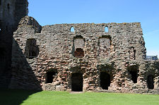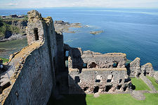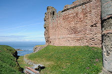 However you look at it, Tantallon Castle is really all about its massive 12ft thick curtain wall. We've already discussed the mid tower. In addition, at the north-west end of the wall was the large circular Douglas Tower, offering 6 storeys of accommodation for the Douglas family who held sway here through most of the castle's life. Very little of it was left standing by Cromwell's artillery. At the south-east end of the curtain wall was the East Tower, originally five storeys high but again largely destroyed in 1651.