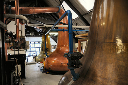In more recent times one of the wash stills came to the end of its useful life (the copper that stills are made from acts as a catalyst in the distillation process and is actually consumed over time). Efforts to replace it on a like for like basis were thwarted by the difficulty of meeting modern health and safety standards within the structure of the existing stillhouse so the decision was taken to use just a single pair of stills. The second spirit still is therefore no longer used, but remains in place because removing it would be highly disruptive. This sequence of events helps explain why there is a large open area at the front of the stillhouse where the second wash still once stood.