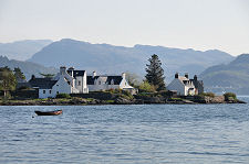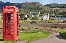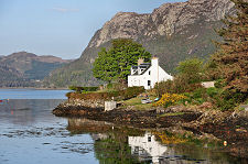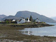 This small lochside village is one of the most attractive in Scotland, an idyllic place in an idyllic setting. A row of neatly painted cottages hugs the shoreline following the curve of the tiny harbour. Palm trees line the main street and the whole scene is framed by a landscape of islands, heather and pine. Across the harbour the views are of white cottages on a craggy point, with the mountains of Wester Ross in the background. It comes as no surprise to find that Plockton is a haven for artists.