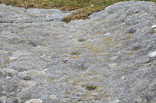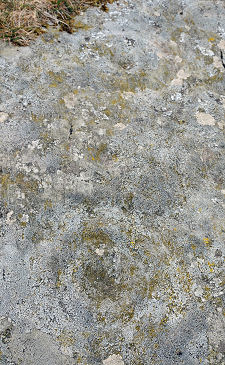 What you are able to see depends very much on the light conditions at the time of your visit and how long and hard you look. The most obvious carvings are two complete ring markings, each comprising a series of concentric circles carved on the upper face of an outcropping rock. Not far away is another rock carrying a series of small egg sized depressions: these are known as cup marks and they often accompany ring markings.