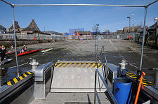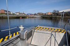 On a fine day you can enjoy the views along the Clyde, which includes one of the Clyde's surviving shipyards as well as new housing developments where other shipyards once stood. Passengers board via a front ramp from concrete slipways originally built to support car ferry services. (Continues below image...)