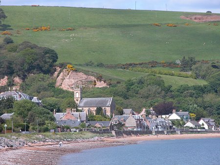 In distant views from Chanonry Point to the south, Rosemarkie's most outstanding feature is the Parish Church, used as a landmark by mariners in the Moray Firth since it was built in 1821.