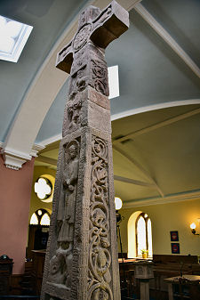 By 1887 the importance of the Ruthwell Cross, and the need for an indoor location to protect it from the elements, was becoming better recognised. The result was the construction of a new north apse for the church, specially intended to house the cross. The cross is so large it had to be moved to its new home while the apse was being built, and so large that it was necessary to lower the central portion of the floor of the apse by several feet just to allow the cross to fit.