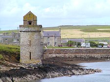 Having cleared the houses intruding into the view from his castle, he set about further improvements in the harbour area. These include a truly grand gatehouse that would look more at home defending a castle of the 1200s than one of the 1800s. This has indirectly proved of great service to the inhabitants of Shapinsay: today The Gatehouse is the island's only pub and comes complete with its own football team.