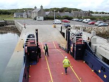 Shapinsay built in 1989, can hold up to 12 cars and 91 passengers, and uses an interesting variant on the roll-on roll-off theme. Vehicles reverse on to the front of the ferry and drive straight off at the destination. The nice yellow lines on the deck are there to assist in the process, but bystanders and foot passengers can still find occasional entertainment as drivers hand over their car keys to members of the crew with the admission they can't reverse.