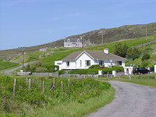 North of Pollochar a number of roads to the west of the B888 run through scattered townships before giving access to the coastline. Perhaps the best of these is the road through Garrynamonie. This is signposted to a picnic area from the main road, and the junction is just south of the imposing bulk of Our Lady of Sorrows RC Church. En route through Garrynamonie, you pass one of the most remarkable buildings in the Uists, a thatched croft house that has clearly survived in occupation for a very considerable period of time.