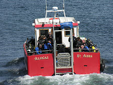 The harbour is home to many dive boats catering for the scuba divers who flock here: and those not diving from boats do so from the rocks outside the harbour itself. But not everyone is dressed in rubber. St Abbs harbour is also very popular with yachtspeople and fishermen, again both in boats and on the many rocks in the area.