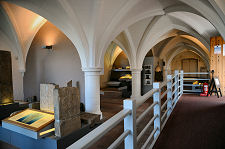 The museum is in two parts. One occupies the undercroft of the south range of the priory, underneath what was originally the cathedral refectory. This is reached beyond the visitor reception.