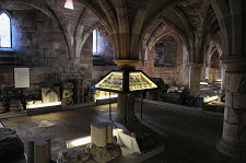 The east range is home to many of the finest individual items in the museum's collection, from the whole period covered. These include a nice Pictish cross-slab and the shafts of two free standing medieval stone crosses. There is also some very fine statuary on view. This includes the remains of the effigy of Bishop Henry Wardlaw, who died in 1440, and a superb effigy of a master mason, also dating from the 1400s.
