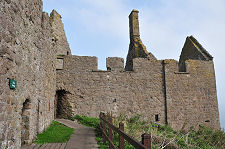 Dunnottar Castle lies just off a minor road, itself off the main A92 a mile or so south of Stonehaven. A car park that has been considerably extended in recent years gives access to a path that descends the landward cliffs before climbing up to the castle itself. Reaching the castle involves descending or climbing over 200 steps (with the reverse on the way back) so access for those with mobility difficulties is inevitably problematical.