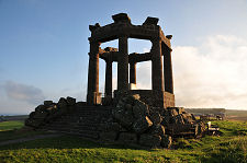 The memorial that eventually emerged is in the form of a classical temple. Most sources describe it as "round", though it is actually octagonal in shape. The structure has something of the appearance of an ancient ruin. This was deliberate, and meant to signify the many shortened and ruined lives caused by the conflict. If delays in building the memorial were controversial at the time, there can be no denying that the structure that eventually emerged is extremely impressive. The sheer size is one reason for this, but another is the chosen location, which ensures it is visible from most of Stonehaven and from much of the surrounding area.