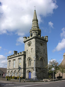 Perhaps the most striking addition to the still young Strichen was the Town House, built in 1819. This has an imposing tower and spire which borrow from the design of Scottish tolbooths of earlier centuries. When originally built the arcaded ground floor had open sides, providing a covered market area. At the same time, the same architect, John Smith, and the same patron, Thomas Alexander Fraser, 10th Lord of Strichen and later the 12th Lord Lovat and 1st Baron Lovat, were busy building Strichen House, a mile to the south-west. What emerged on its completion in 1821 was a grand granite mansion and accompanying farmstead.