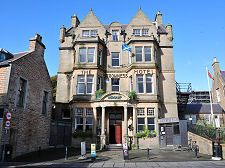 Stromness is today a bustling and charming town. It retains its remarkable main street in which pedestrians have to dodge cars, and cars one another. And there are few places that so amply reward exploration. The narrow passages and roads and the private wharves on the shore side are fascinating, as is the network of steep streets and paths leading up the hillside. One of the streets climbing Brinkies Brae between high walls rejoices in the name of "Khyber Pass". This is either a descriptive joke that stuck, or a celebration of Empire: take your pick. In the heart of the town is the excellent Stromness Museum, Orkney's Maritime and Natural History Museum, which has occupied its current premises since 1856.