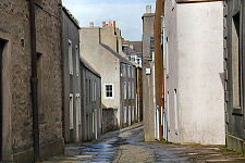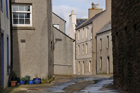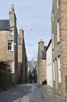There's nowhere quite like Stromness. It stretches for over a mile along the shore of Hamnavoe, an inlet of Scapa Flow sheltered by the islands of Outer Holm and Inner Holm. Yet the core of the town is just one main street that twists and turns narrowly between the shoreline and the hillside behind. This main street goes under at least five different names as it makes its way through the town. It is intersected by streets that on one side climb steeply up Brinkies Brae, the 300ft granite ridge that lies behind the town. On the seaward side they make their way between close-packed buildings to the private wharves that seem to lie behind every house and shop.
