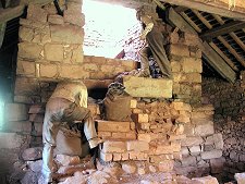 The centre of the process at Bonawe was the furnace itself. This was fed from the top with local charcoal, with iron ore from Furness, and with limestone from Lismore. Bellows driven by a waterwheel blasted air through the furnace, and the iron trickled out at the bottom.